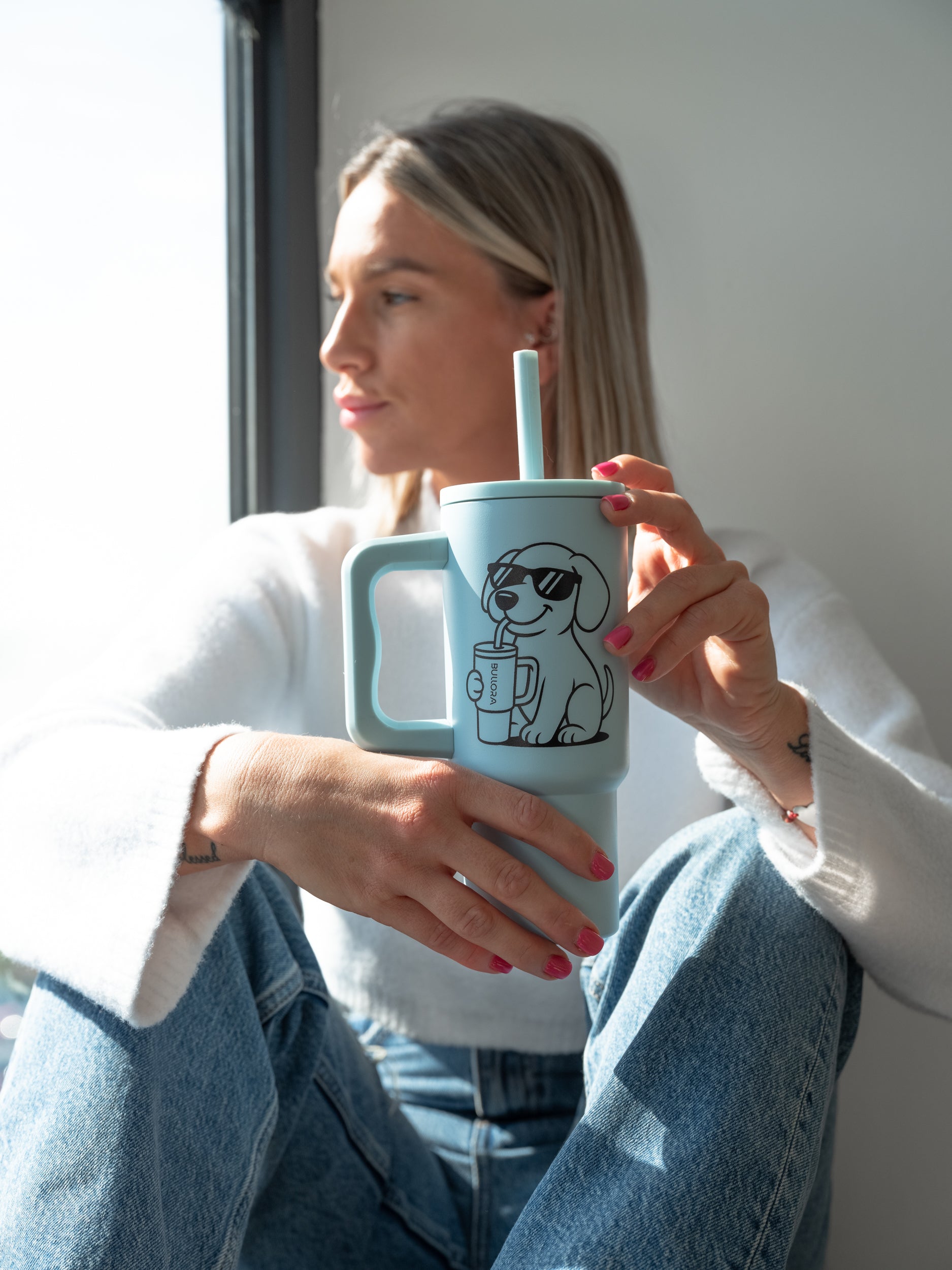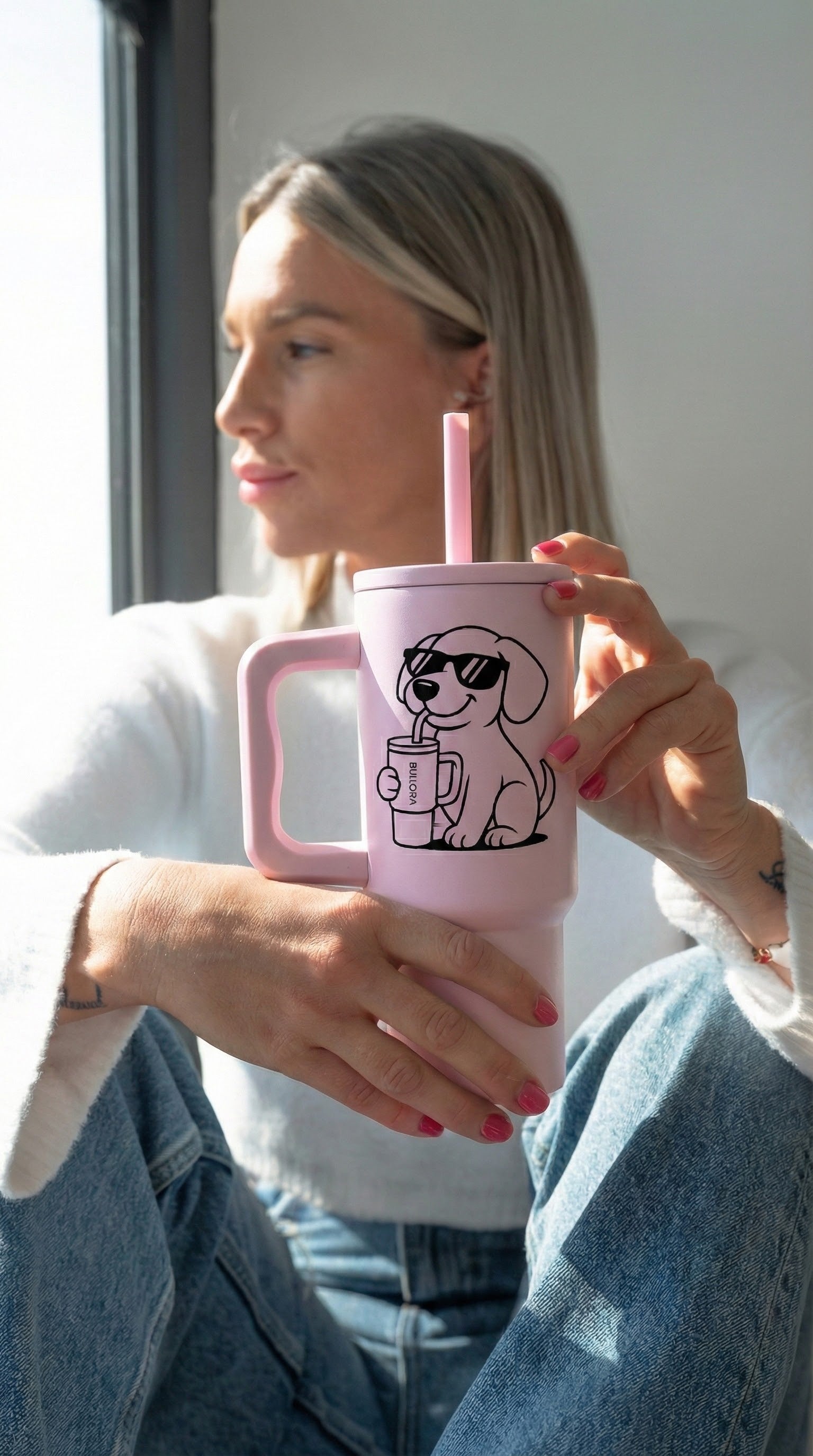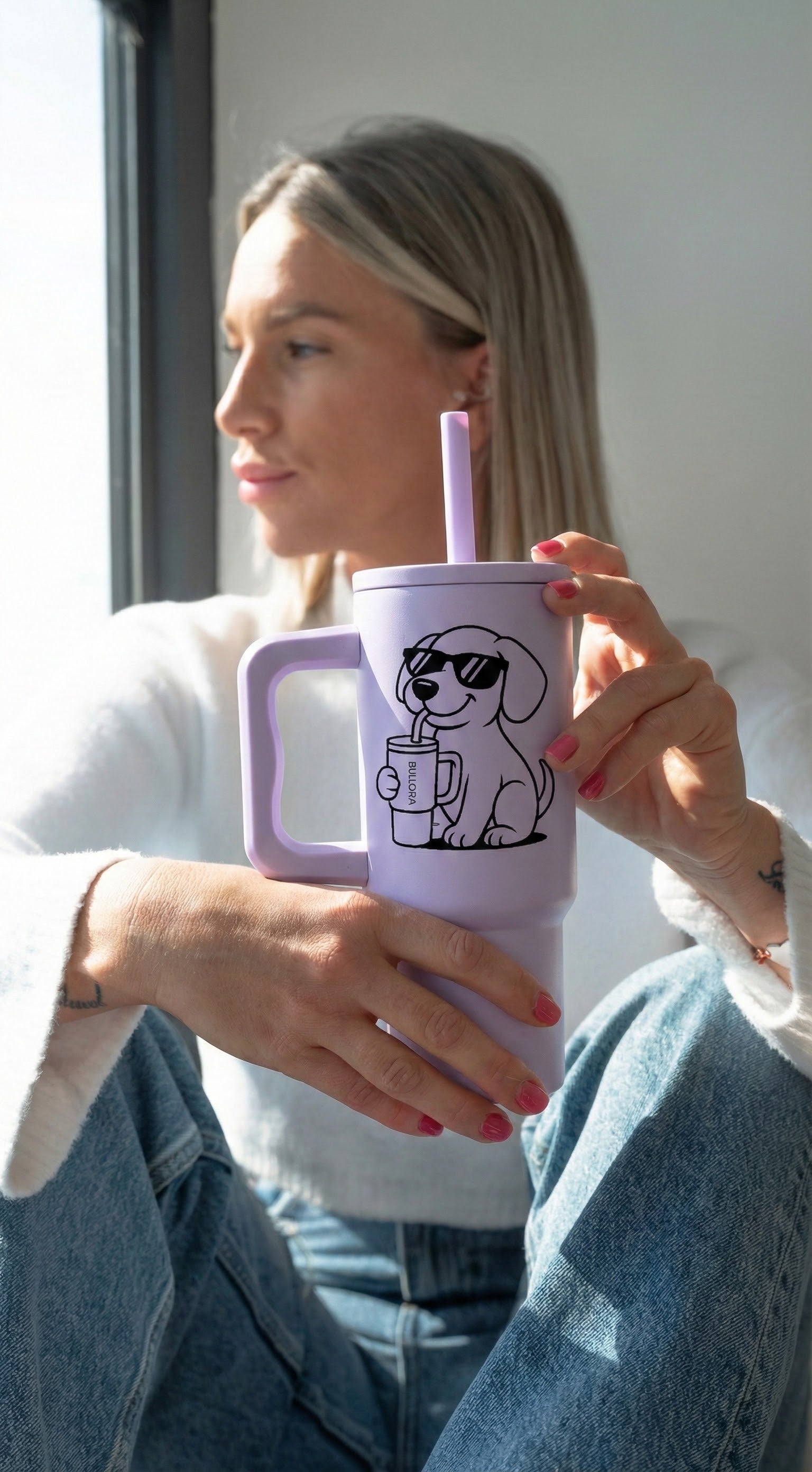Nem csak egy tumbler. A hátoldalon megbújó laza kutyus a te személyes jókedv-felelősöd, ami minden nap mosolyt csal az arcodra.